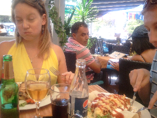 Poniedzialkowy obiad w makarska :) Sasiedzi.nam.ewidentnie zazdroszcza, a Aga mimo.zlej miny mowi, ze pyszne :)