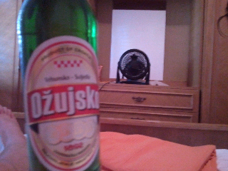 Wbrew niektorym.napison nao koszulka, ze krolowa jest.jedna.oznajmiam, ze monarchia zostala tylko w przemysle stoczniowym [Grzegorz :-D to do terminu gwiazda]... W jugoslawia to.krolowa.jest piwo, prysznic, moj wentylator i super pogoda. Jest bajecznie i bardzo cieplo...okolica jest.niesamowita. Pstragu podjazd pod nasza kwatere.taki jak wzniesienia na Krecie. Pomysl z wentylatorem tak jak wspomnialem wczesniej wstrzelone w dziesiatke. Grzegorzu miales racje zeby brac jedzenie wlasnie jestesmy po kociolku wegierskim i odpoczywam.